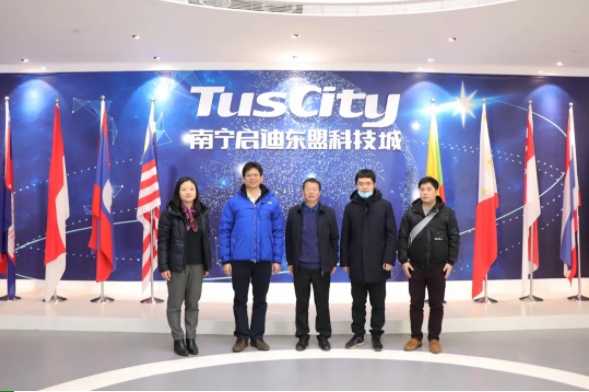 2021年1月12日,南寧市大數(shù)據(jù)發(fā)展局局長尹平一行到訪南寧·啟迪東盟創(chuàng)新中心考察調(diào)研,廣西啟迪科技城集團副總裁曾慶等陪同。