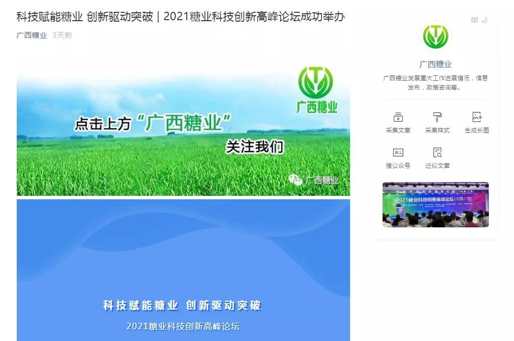 媒體聚焦 | 20多家媒體報(bào)道2021糖業(yè)科技創(chuàng)新高峰論壇(中國·廣西)盛況