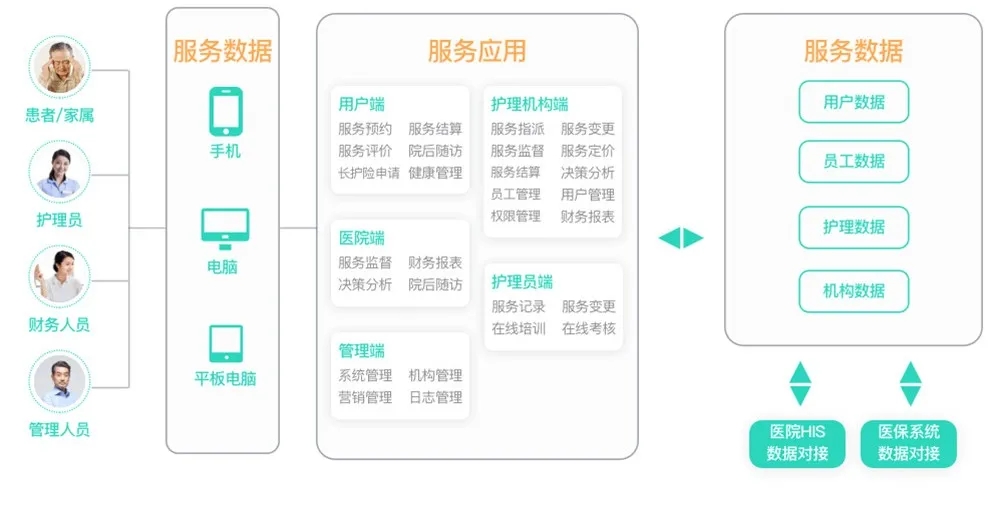 攜手長護平臺瞄準了行業(yè)當前普遍存在的專業(yè)培訓缺乏,管理體系混亂、收費標準不一、社會保障不足、養(yǎng)老床位供不應求、服務(wù)內(nèi)容單一等問題,以在線護理為切入,向醫(yī)療行業(yè)信息化系統(tǒng)進行延伸。平臺的服務(wù)監(jiān)督、院后管理、移動管理、智能報表、決策分析等核心功能,具有多方在線透明化、服務(wù)流程標準化、服務(wù)信息數(shù)字化等優(yōu)勢。旨在打造醫(yī)療行業(yè)的共享平臺,構(gòu)建一個完整的商業(yè)閉環(huán),為顧客、定點醫(yī)療機構(gòu)、照護人員提供更專業(yè)、更貼心、更規(guī)范、更快捷的智能服務(wù)。