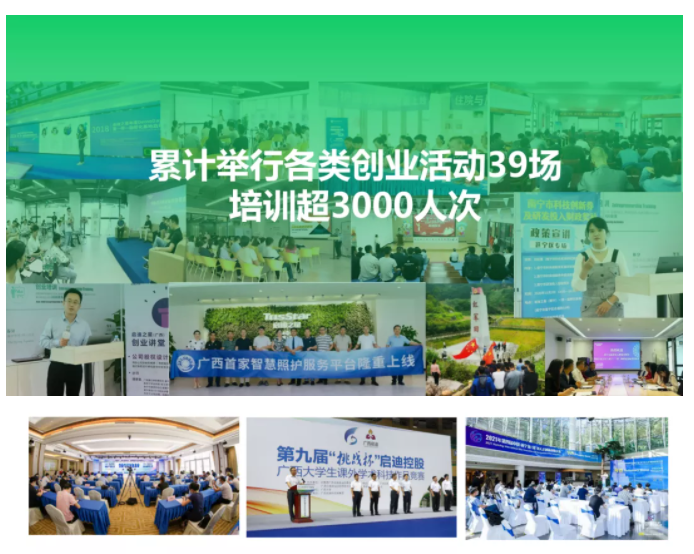 圍繞啟迪之星“九大品牌”系列活動(dòng),積極開展項(xiàng)目路演輔導(dǎo)、大學(xué)生創(chuàng)業(yè)講堂、股權(quán)設(shè)計(jì)沙龍、銀企對(duì)接交流、品牌宣傳推廣、金融風(fēng)險(xiǎn)防控、技術(shù)(人才)對(duì)接會(huì)等各類創(chuàng)業(yè)培訓(xùn)活動(dòng),累計(jì)舉行各類創(chuàng)業(yè)沙龍活動(dòng)39場(chǎng),培訓(xùn)超3000人次?;爻修k了“挑戰(zhàn)杯”啟迪控股廣西大學(xué)生課外學(xué)術(shù)科技作品競(jìng)賽、清華校友三創(chuàng)大賽、中國(guó)·南寧海(境)外人才創(chuàng)新創(chuàng)業(yè)大賽、“5G+防災(zāi)減災(zāi)”應(yīng)用征集大賽、南寧市退役軍人創(chuàng)業(yè)創(chuàng)新大賽及產(chǎn)品推介會(huì),從賽事中篩選引進(jìn)了“新一代關(guān)節(jié)韌帶重建療法”“云安全技術(shù)”“出行天氣”等10余個(gè)獲獎(jiǎng)優(yōu)質(zhì)項(xiàng)目落戶。