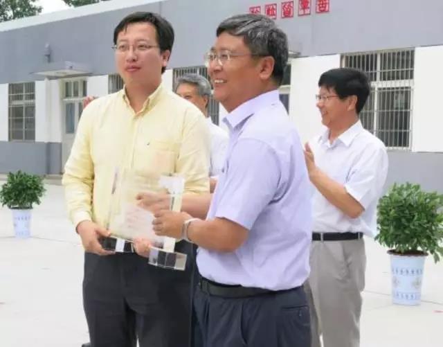 ▲ 阜寧縣教育局局長(zhǎng)蔡衛(wèi)國(guó)向啟迪控股代表贈(zèng)送“啟迪樓”模型