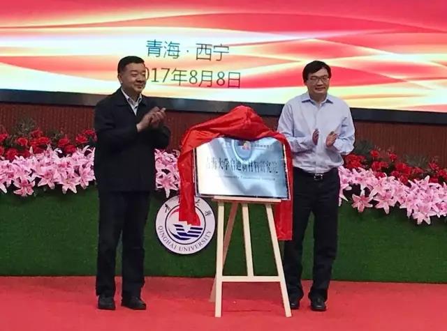 ▲ 青海省委常委、宣傳部長(zhǎng)張西明與張金生副總裁(右)為青海大學(xué)啟迪新材料研究院成立揭牌