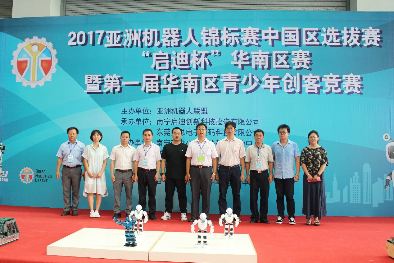 8月12日至14日,2017亞洲機器人錦標賽中國區(qū)選拔賽——“啟迪杯”華南區(qū)賽在南寧國際會展中心隆重舉行,本次賽事由亞洲機器人聯(lián)盟(Asian Robotics League)主辦,廣西啟迪、東莞博思電子數(shù)碼科技有限公司聯(lián)合承辦。廣西啟迪副總裁曾慶、亞洲機器人聯(lián)盟中國區(qū)主席曾慶龍、廣西科技館青少年項目科長韋文潮等領(lǐng)導(dǎo)應(yīng)邀出席。