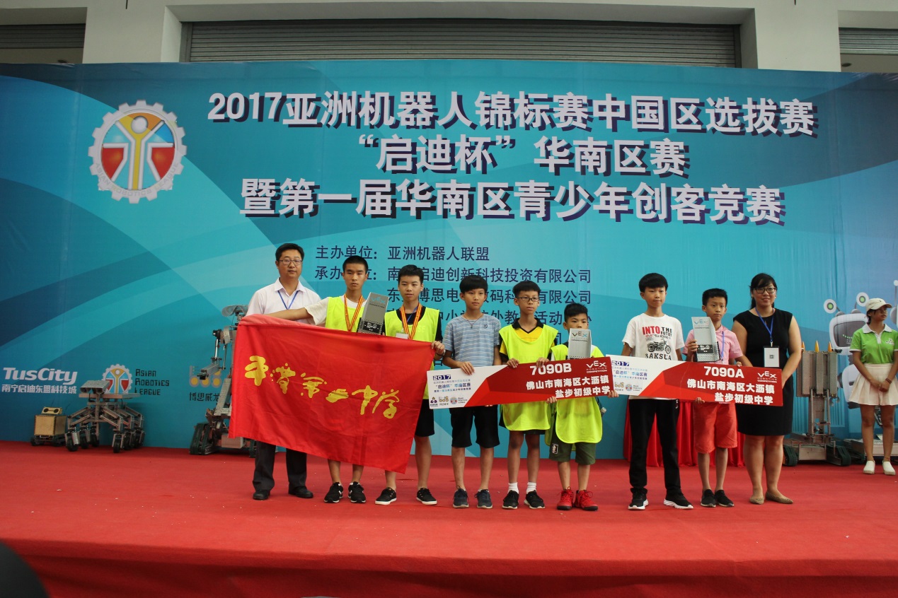 ▲佛山市南海區(qū)大瀝鎮(zhèn)鹽步初級中學(xué)榮獲VEXEDR項目冠軍