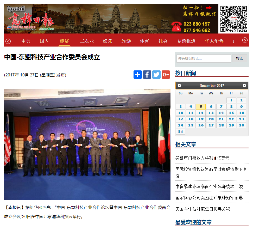 中國-東盟科技產(chǎn)業(yè)合作委員會成立|高棉日報(bào)