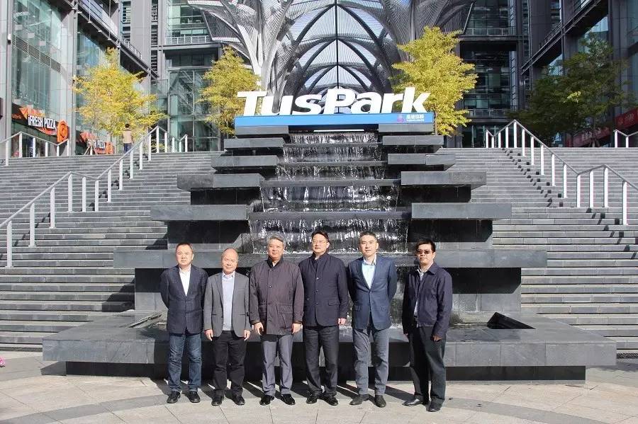 ▲ 甘為民董事長(左三)一行參觀啟迪之星孵化器