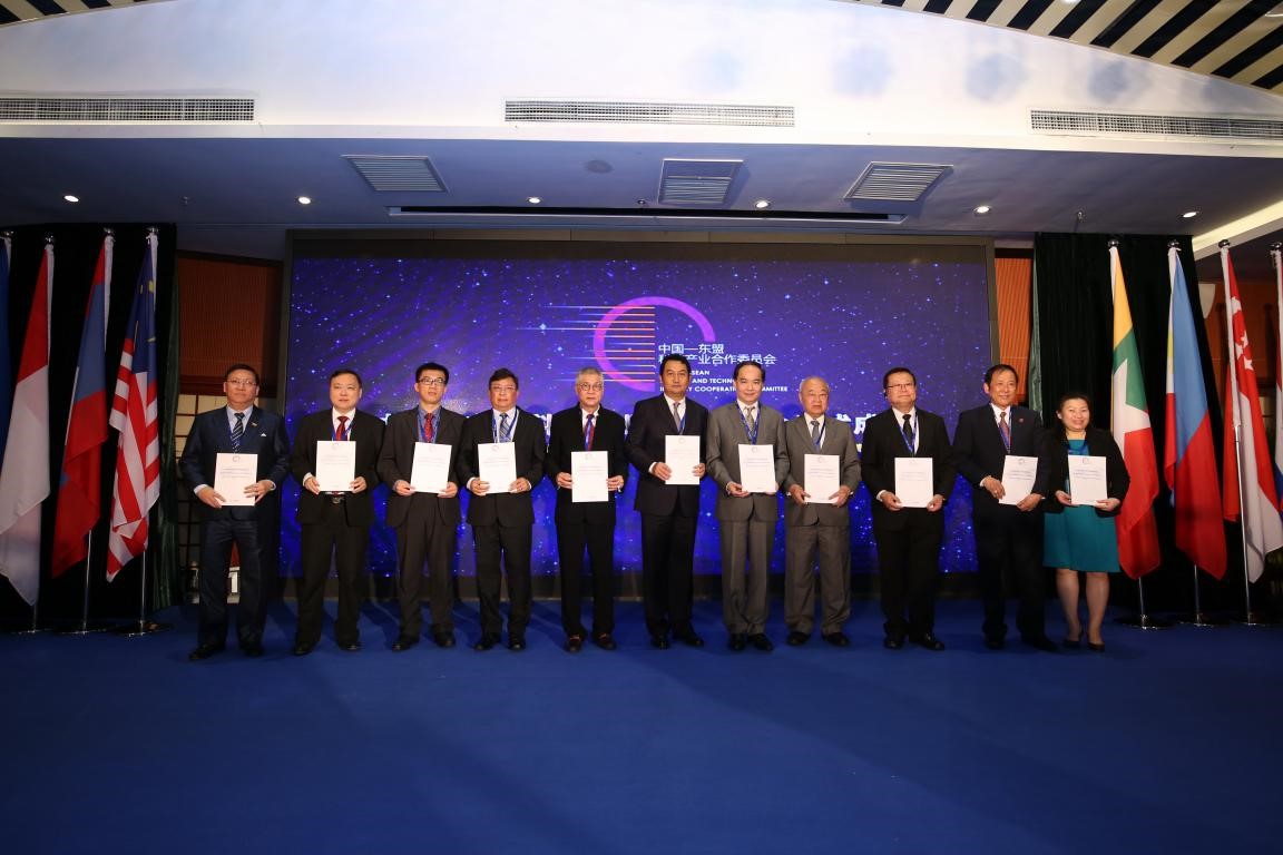 ▲ 中國與東盟十國代表簽署《關于加強中國—東盟科技產(chǎn)業(yè)合作共贏共識》
