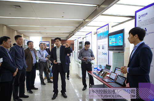 孫旭東高級(jí)副總裁(左一)向代表團(tuán)介紹啟迪控股