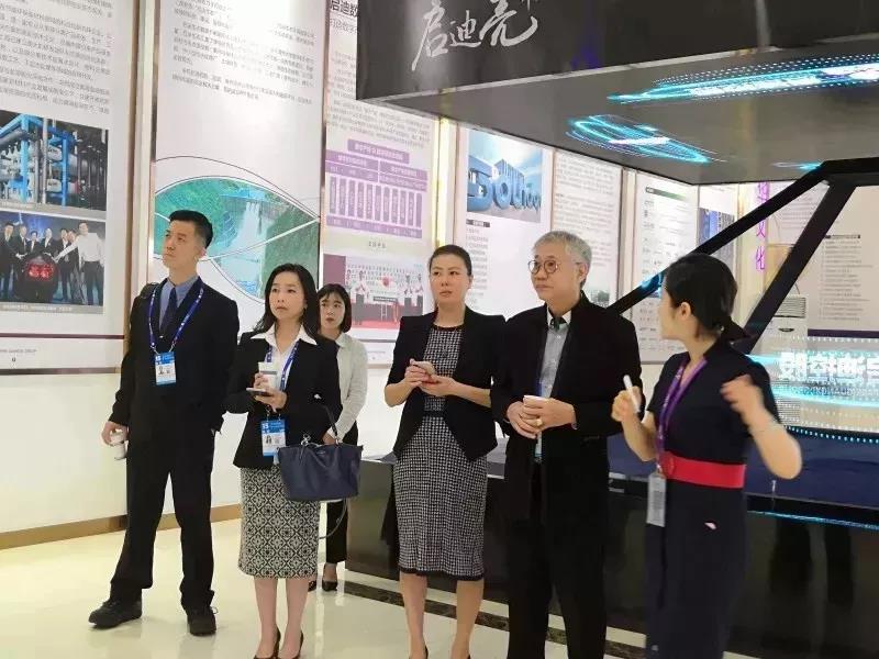 ▲東盟國(guó)際生態(tài)城教育中心院士何熾昌參觀啟迪亮展示中心