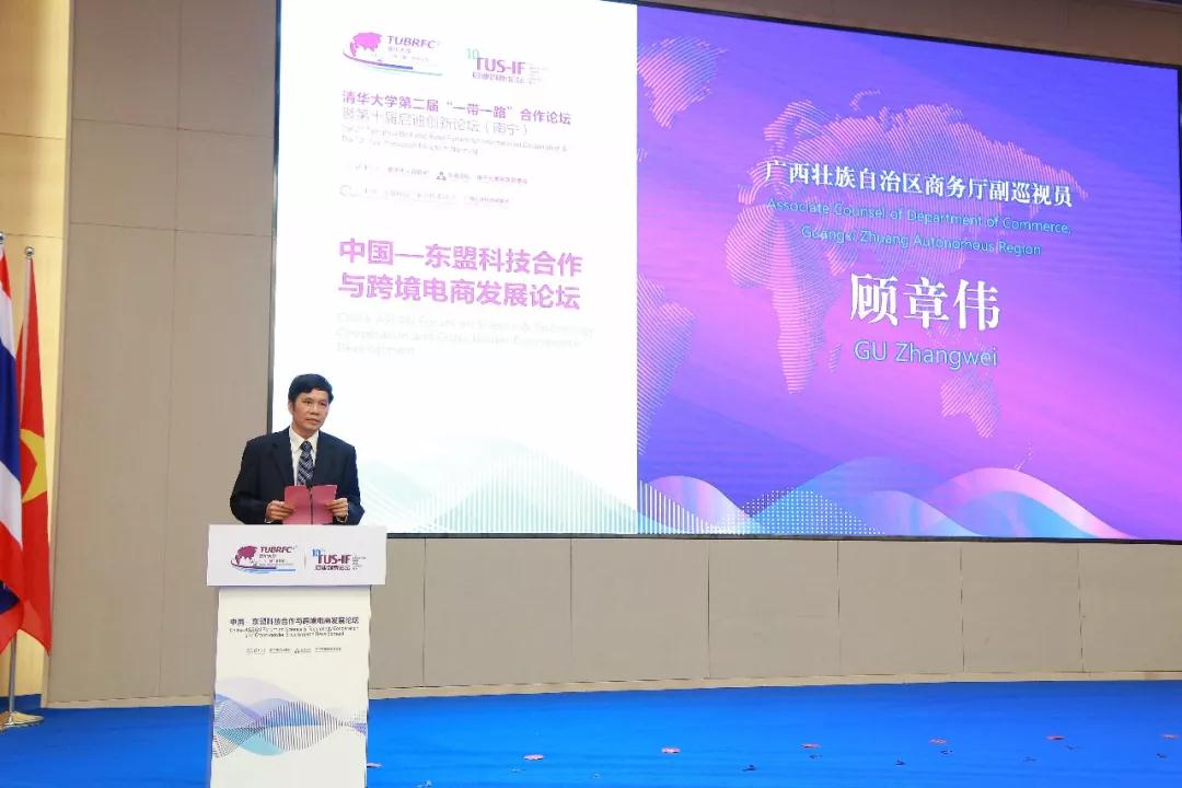 本屆論壇作為清華大學(xué)第二屆“一帶一路”論壇暨第十屆啟迪創(chuàng)新論壇的重要組成部分,由廣西自治區(qū)商務(wù)廳、科技廳支持舉辦,中國—東盟科技產(chǎn)業(yè)合作委員會與廣西啟迪科技城集團承辦,“一帶一路”沿線國家的政要、學(xué)者、工商界領(lǐng)袖、知名高校、科研院所代表,東盟各國駐華使領(lǐng)館官員、商協(xié)會代表和企業(yè)家代表,中國國際電子商務(wù)研究院、及阿里巴巴、京東等國內(nèi)知名互聯(lián)網(wǎng)領(lǐng)軍人物,廣西區(qū)內(nèi)物流、金融、產(chǎn)業(yè)園區(qū)等代表齊聚綠城南寧,共話科技合作與跨境電商發(fā)展。