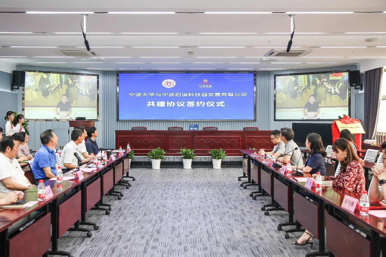當(dāng)天,啟迪控股市場發(fā)展總監(jiān)、啟迪科技城集團(tuán)副總裁、寧波啟迪科技園公司董事長王鼐與寧波大學(xué)副校長樂傳永代表雙方進(jìn)行云簽約并揭牌。根據(jù)協(xié)議,雙方將統(tǒng)籌各自教學(xué)科研、創(chuàng)新創(chuàng)業(yè)優(yōu)勢(shì)資源,合作共建以創(chuàng)業(yè)教育與實(shí)踐為特色的“寧波大學(xué)啟迪創(chuàng)業(yè)學(xué)院”以及以科技成果轉(zhuǎn)化、創(chuàng)業(yè)項(xiàng)目指導(dǎo)和孵化為核心的“寧波大學(xué)啟迪創(chuàng)新創(chuàng)業(yè)基地”。其中,基地分校內(nèi)基地寧波大學(xué)1986創(chuàng)夢(mèng)園和校外基地啟迪科技園(寧波)兩部分,均由雙方共建共管。
