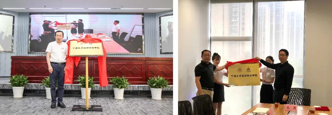 ▲ 雙方代表進(jìn)行“寧波大學(xué)啟迪創(chuàng)業(yè)學(xué)院”揭牌