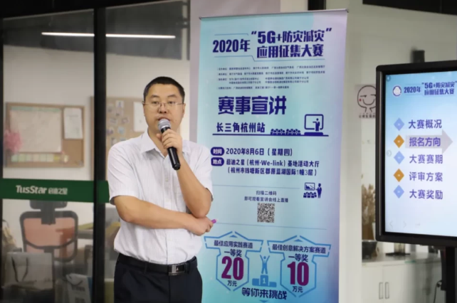 8月6日上午,2020年“5G+防災(zāi)減災(zāi)”應(yīng)用征集大賽賽事宣講長三角站在啟迪之星(杭州·we-link)基地圓滿舉行。現(xiàn)場邀請了參賽項(xiàng)目代表和創(chuàng)業(yè)團(tuán)隊(duì)參會,本次賽事宣講會共吸引了線上超500位企業(yè)家同步觀看活動直播。